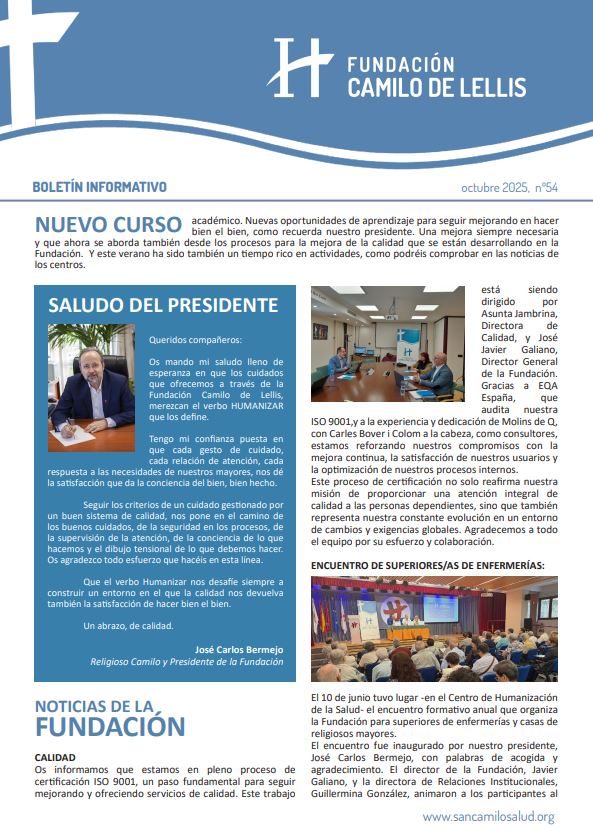 Fundación Camilo de Lellis Dirigida por Javier Galiano, la Fundación para el cuidado de mayores de instituciones religiosas, promueve una comunicación interna que refuerza la identidad. Ver Boletín de la fundación aquí VOLVER
