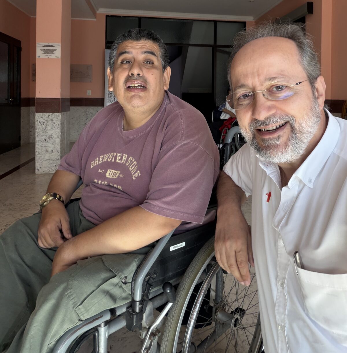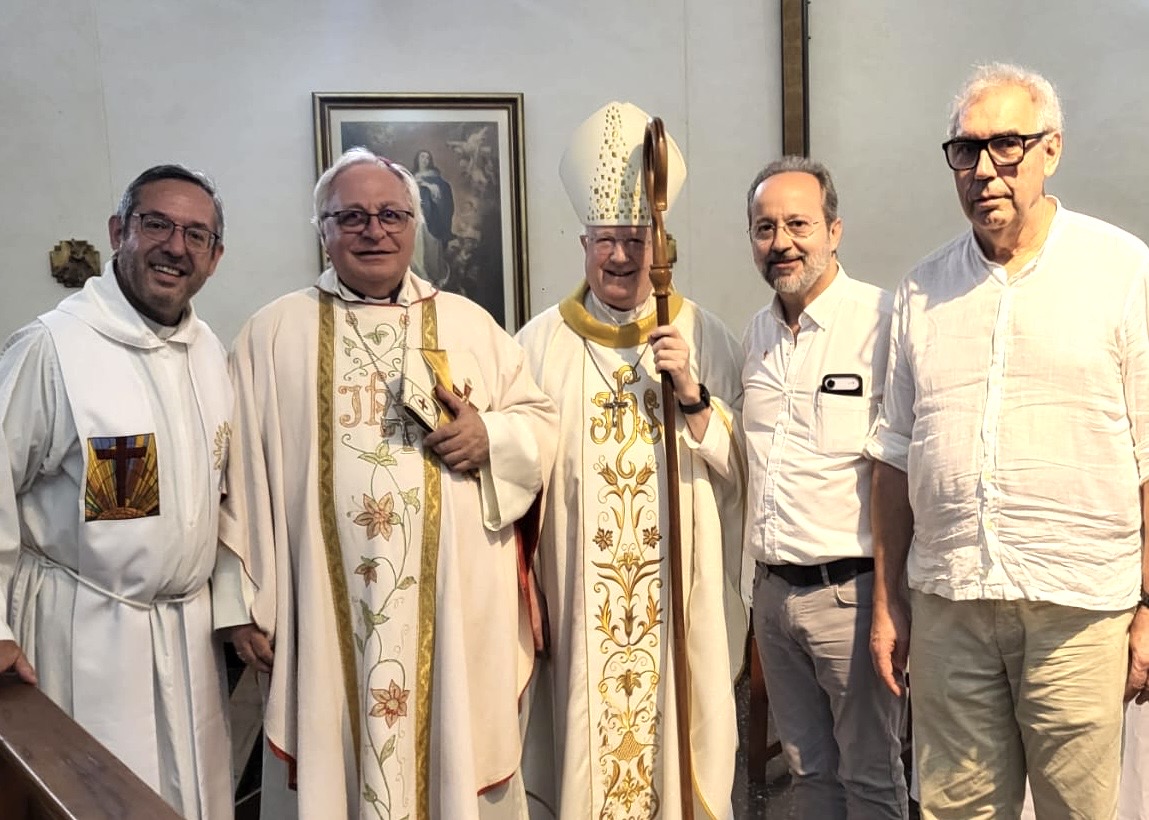 Mons. Pedro María Laxague, y su obispo auxiliar, Mons. Justo, acogen al p. Francisco Berola, direc...